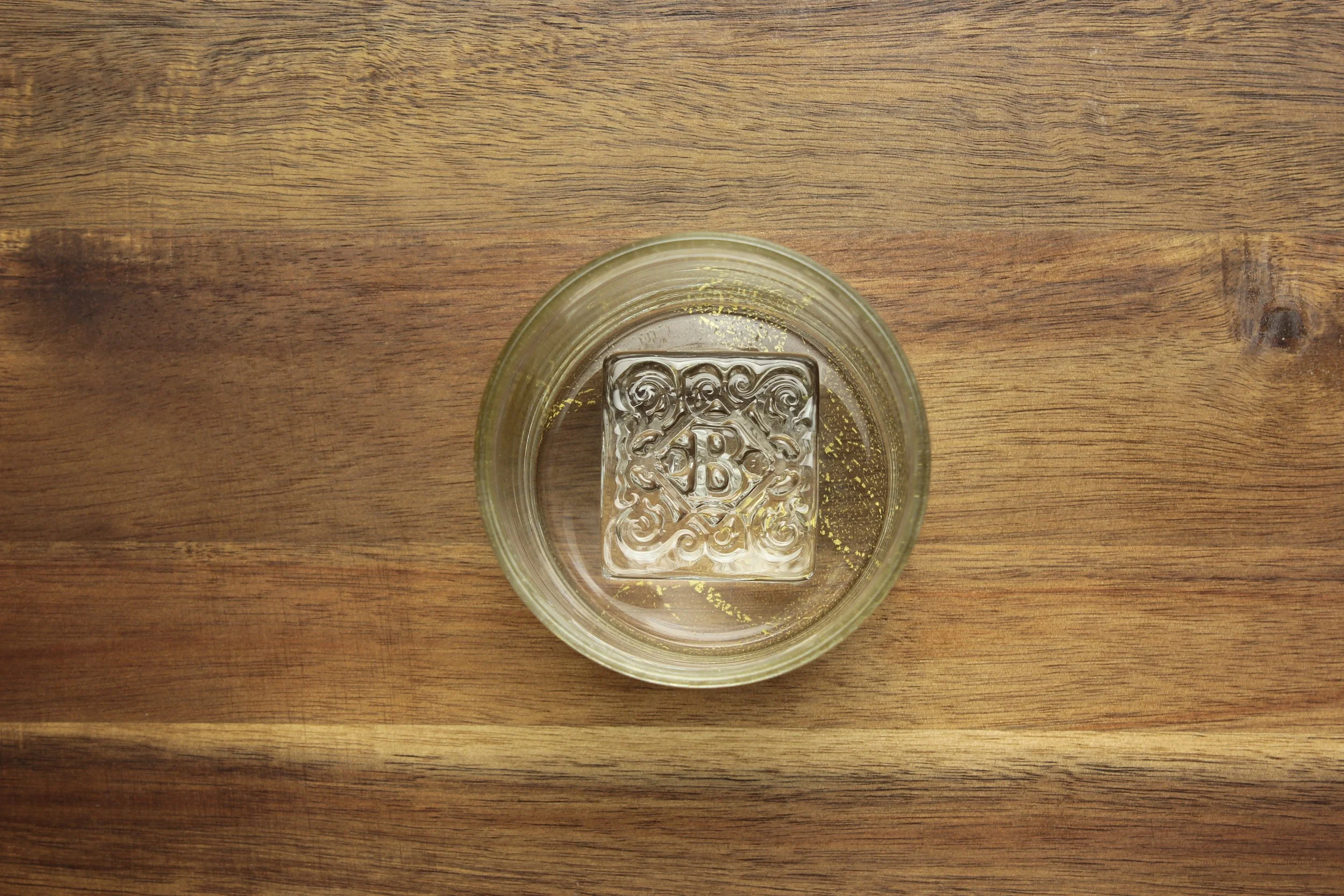 Stamped Biltmore Crest on Gold Cube Glass